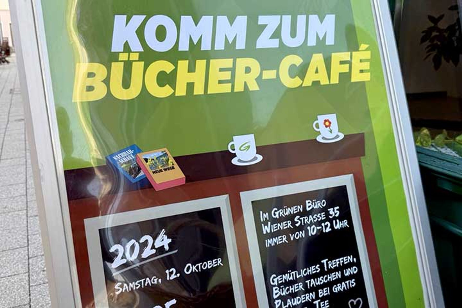 Wer diesmal keine Zeit hatte, muss nicht traurig sein: das Bücher-Café soll regelmäßig stattfinden – jeweils im Büro der Grünen, Wiener Straße 35.