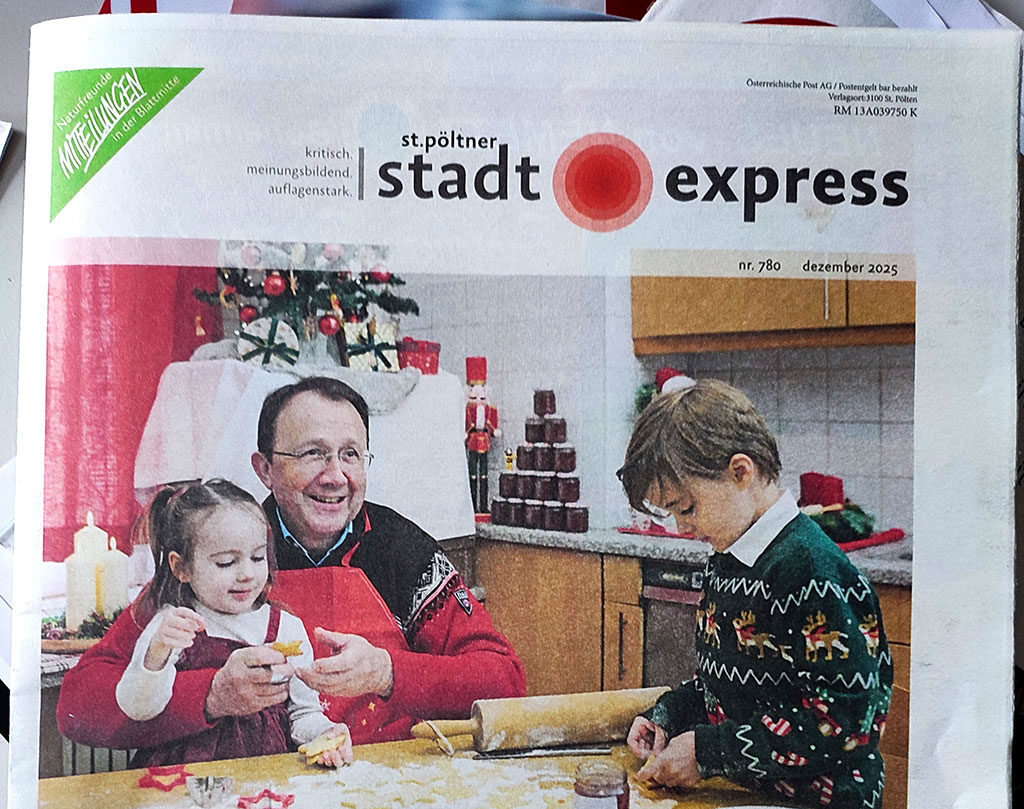 - Ist es nur Zufall, dass ein nahezu identisches Bild das Parteimagazin „Stadtexpress“ auf der Titelseite ziert?