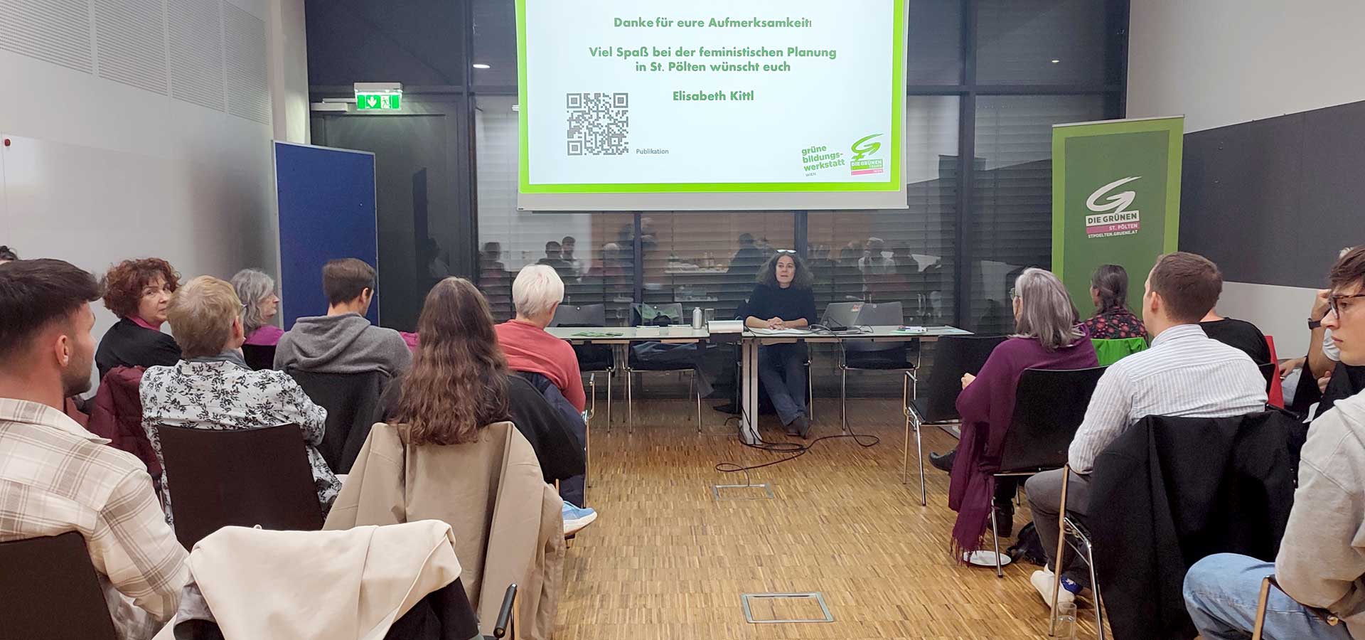 Die Grünen St. Pölten luden am 24.10.2025 zur Auftaktveranstaltung ihrer neuen Veranstaltungsreihe „St. Pölten im Dialog – Reden wir drüber!“ ein. Im Zentrum stand das hochaktuelle Thema feministische Stadtplanung – mit Fokus auf gerechtes Wohnen, inklusive Mobilität und eine Stadtentwicklung, die niemanden ausschließt. Das Interesse war groß.